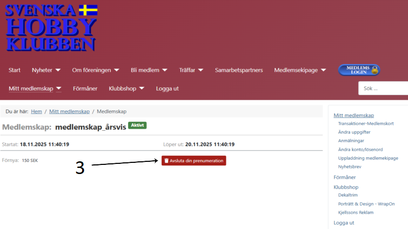 För att avsluta ditt medlemskap gör så här: